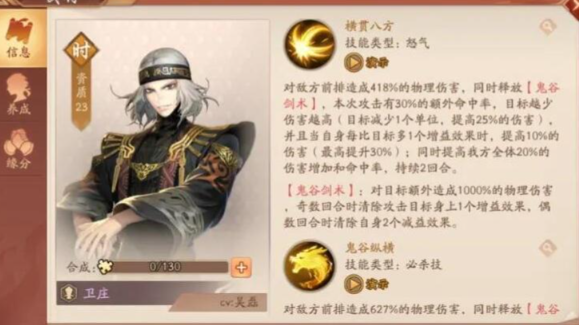 技能方面,卫庄的核心优势在于额外伤害和命中加成,这让他在低星阶段就有不错的表现。他的怒气技能和大招都是高额物理伤害,还能根据回合数清除敌方buff或我方debuff。这种攻守兼备的特性,使得他在当前版本中非常吃香,特别适合用来针对那些依赖buff的对手。