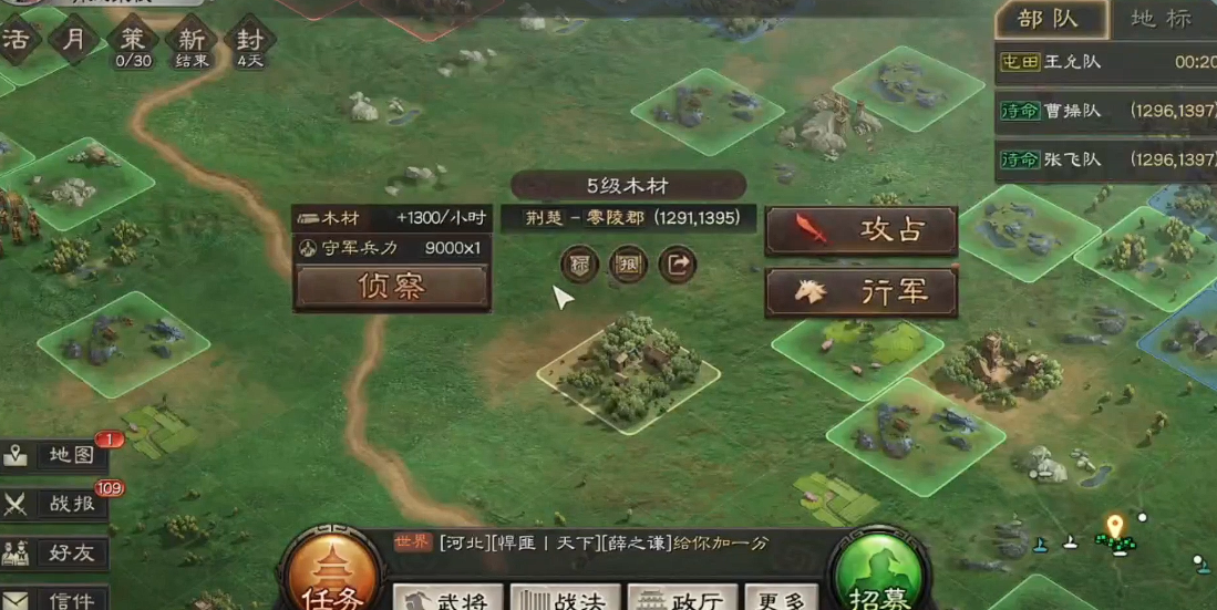资源管理是维持主城运转的基础,需平衡木材、铁矿、石料、粮食四种基础资源的采集与分配。通过占领高级资源地并合理使用屯田功能可显著提升资源获取效率,尤其在游戏中期,优先攻占五级及以上资源地能有效突破资源瓶颈。城建系统中的君王殿升级应作为核心目标,其等级直接影响其他建筑解锁与部队统御上限,建议在资源允许时优先提升至7级以解锁兵营等关键设施。