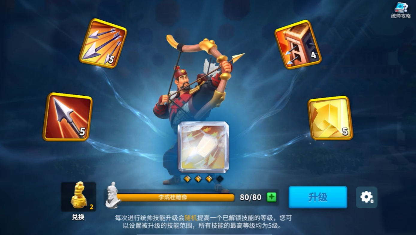 李成桂的强度主要体现在其独特的技能机制和战场适应性上。作为传说品质的弓兵统帅,李成桂的核心优势在于觉醒后的圆形范围AOE技能万箭齐发,基础系数高达1700,且命中目标越多伤害递减幅度越小,在混战中能同时对多个目标造成可观伤害。其被动天命提供最高50%的主动技能增伤,进一步强化输出能力,而射箭艺术通过普攻概率回怒和弓兵攻击力加成,形成技能循环与兵种加成的双重增益。这种设计使李成桂在野战、集结和驻防场景中均能发挥战略价值。