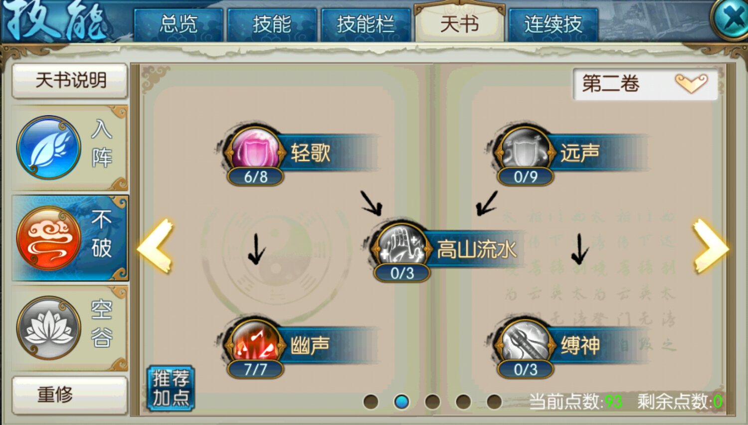 属性培养应优先堆叠攻击、暴击、暴伤加成三项数值,装备选择云纹剑与星辉戒指强化暴击收益。被动技能山外清音与矫健必须满级,前者提供团队增益后者提升生存能力。第五卷天书建议点出梅花三弄强化连招伤害,但需牺牲部分治疗加成,这种取舍符合输出流追求极限伤害的定位。
