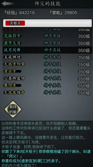 虚渺宫作为放置江湖中的中立门派,其核心特色并非以攻击性武学见长,而是通过驻颜术与多样化武学体系吸引玩家。加入该门派需满足身法大于30点且未加入其他门派的条件,拜师界面选择中立门派即可入门。入门后可学习天玄独尊功或心斋御虚功两种基础心法,二者对新手均较为友好,后续功法分支覆盖拳脚、刀剑等多类武器,适配不同战斗风格。