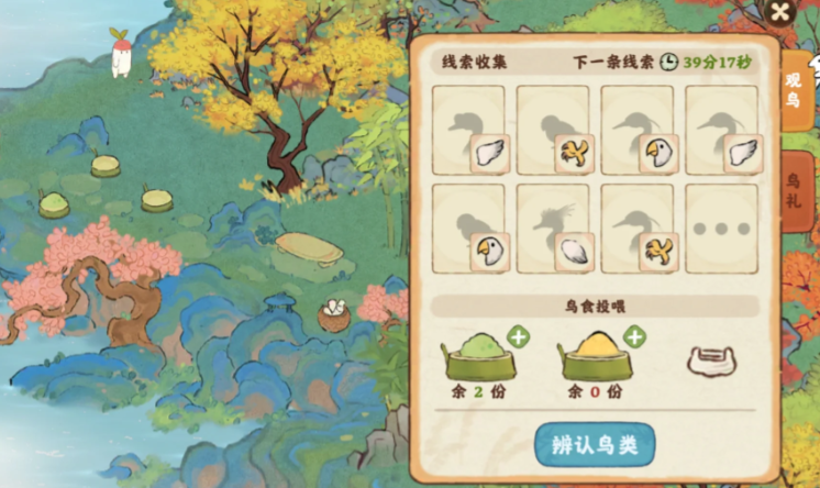 有了花朵之后,咱们就可以去准备鸟食了。游戏里不同种类的小鸟喜欢吃的食物也不一样,比如竹鹧鸪最爱吃昆虫包。制作鸟食需要用到种出来的花朵和其他一些材料,比如面粉、糖之类的。记得多囤积些基础食材,这样想做鸟食的时候就不会手忙脚乱啦。
