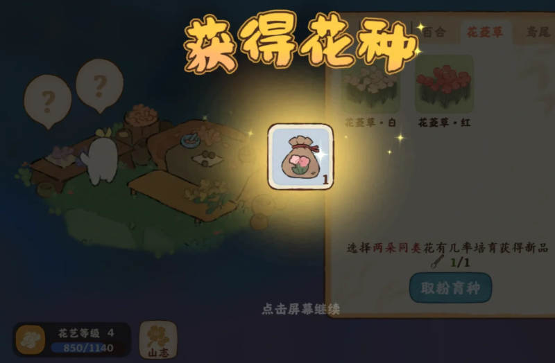 花卉合成是桃源深处有人家中重要的玩法之一,玩家可通过不同花色组合培育新品种。解锁花圃需满足山民等级26级、舒适度3780及铜钱10000的条件,之后可在杂货铺购买基础花种或通过桃花值奖励获取。每日还可前往好友花圃照料两次,概率获得对方花种。需只有已收获的花色才能用于育种,且同色或异色组合均可能产生新花色,但结果存在随机性。