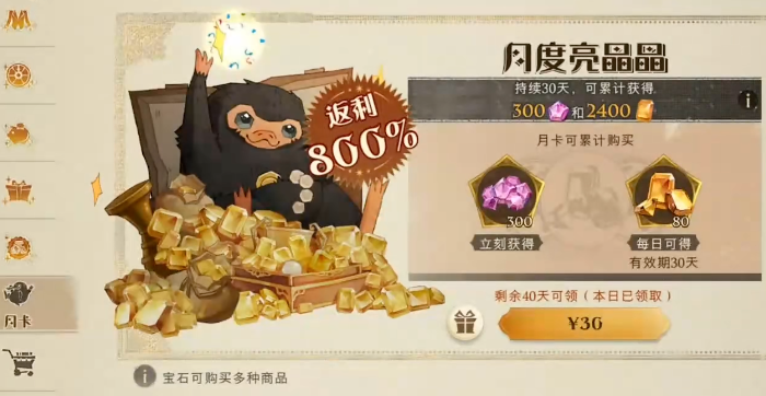 微氪玩家在哈利波特魔法觉醒中需要优先考虑性价比最高的充值项目,首充6元礼包是必选项目,包含紫卡洛蒂和猫头鹰宠物,洛蒂作为回复型伙伴卡在前期实用性极高,而猫头鹰则是外观与功能兼备的宠物。每日限购的非凡卡包同样值得投入,消耗120钻石即可购买,累计30次保底获得金卡,相比图书馆抽卡更具效率,钻石可通过日常任务积累无需额外充值。