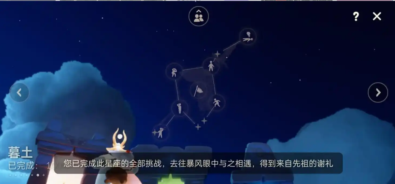 当咱们把所有先祖的物品都兑换完毕后,墓土进度会达到100%。这时候需要前往暴风眼进行献祭,通过伊甸之眼的重生之路。在重生动画结束后,会看到暮土星图上出现问号标志,点击它就能召唤毕业先祖。这位头戴龙骨发型的先祖会出现在星光大道上,咱们只需要消耗2颗爱心就能兑换到龙骨发型。