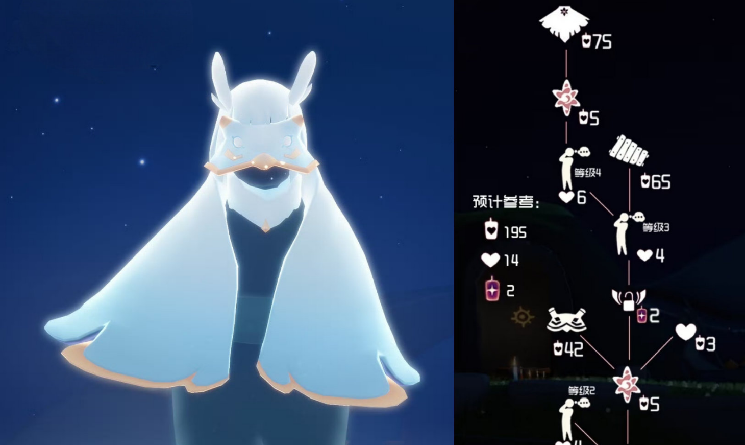 音韵季的白鸟斗篷先祖是复刻活动的常客,他的斗篷以纯白色为主,边缘有精致的金色纹路,飞行时特别飘逸。这件斗篷算是经典款了,几乎能和所有装扮搭配。不过兑换它需要先解锁前置节点,总共要准备85根蜡烛和3颗爱心,建议提前存好资源。