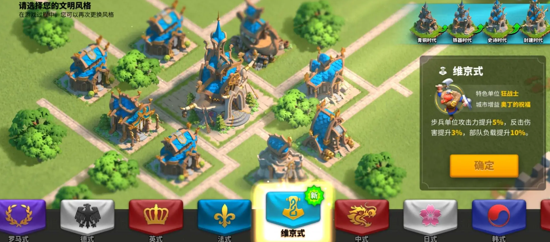 游戏提供了12种不同的文明,包括中式、罗马式、维京式等,每种文明都有独