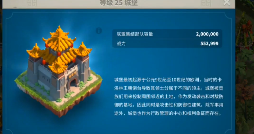 初始城堡由系统自动提供,作为玩家发展的起点,后续升级需要满足前置建筑条
