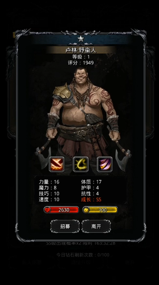 野蛮人的属性成长以力量为核心,技巧和速度次之。蓝皮野蛮人因力量与速度均衡,通常优先转狂战神;胖子野蛮人技巧较高,适合作为蛮荒之王培养;矮子野蛮人属性容易偏低,除非力量突出否则不建议重点培养。转职前需注意,野蛮人前期命中率较低,需依赖中后期装备弥补,因此培养周期较长,建议在资源充足时再投入。