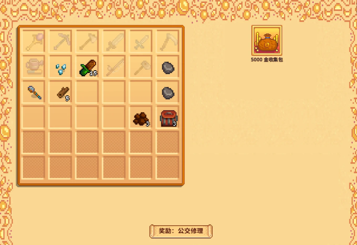 金币收集包是社区中心金库房间的关键任务之一,完成它可以解锁重要的游戏功能。要完成金币收集包,玩家需要积累一定数量的金币并捐赠给社区中心。金库收集包包含四个捐赠项目,分别是2500金币、5000金币、10000金币和25000金币。这些捐赠不需要一次性完成,可以分阶段进行。完成全部捐赠后,社区中心的公交车将被修复,玩家可以乘坐公交车前往沙漠地区。