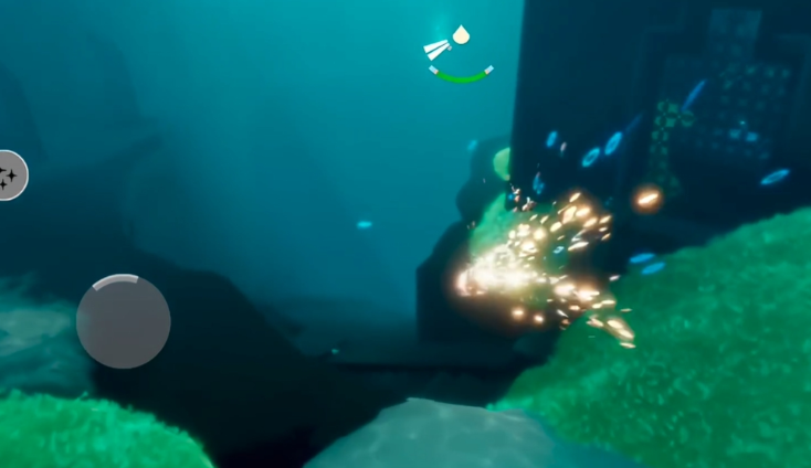 下潜过程中需穿过多层建筑结构,包括铁板、透明柱状障碍物和圆形窗口。绕行至塔底后,左侧会出现黑色球体空间,内部即为大龙栖息地。游向球体附近时需保持横向移动,通过特定空隙进入核心区域。深海环境能见度较低,建议调整视角亮度并留意发光植物作为路标,这些植物同时能提供紧急氧气补给。