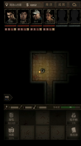 再往前会有一个鬼打墙,记住走左上左上。出来以后左边一个盗洞记得挖,来回就会方便的多。然后左边有一个沙房区,需要很多铲子大约二十把左右,可以顺着边挖能节省很多。中间还有个箱子记得别忘了挖。里面一共有四个怪,前三个怪都是你的队友幻化的别打,打了的话队友就直接成半血。