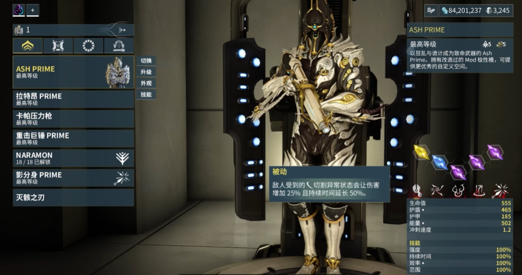 接下来要介绍的是灰烬之刃,这个战甲的输出能力简直爆炸。4技能剑刃风暴可以标记多个敌人,召唤分身一起攻击,伤害非常恐怖。而且开大的时候是无敌状态,根本不用担心暴毙。1技能的手里剑自带流血效果,对付高护甲敌人特别有效。虽然需要一点操作技巧,但熟练之后绝对是刷图利器。