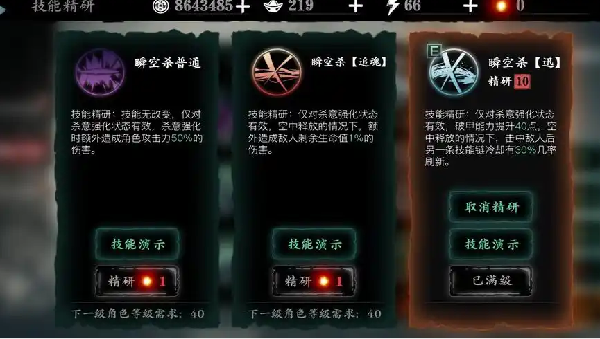 对于输出型职业,优先精研高伤害技能的分支,尤其是附带破甲、真伤或范围效果的选项。例如魔弦的嘈嘈切切精研后真伤加成更高,炽刃的火龙卷可强化燃烧效果。辅助和控制类技能则侧重冷却缩减或效果持续时间,比如弦者的沉默、眩晕类技能精研后控制更稳定。要注意技能链的连贯性,避免因精研导致衔接不畅。