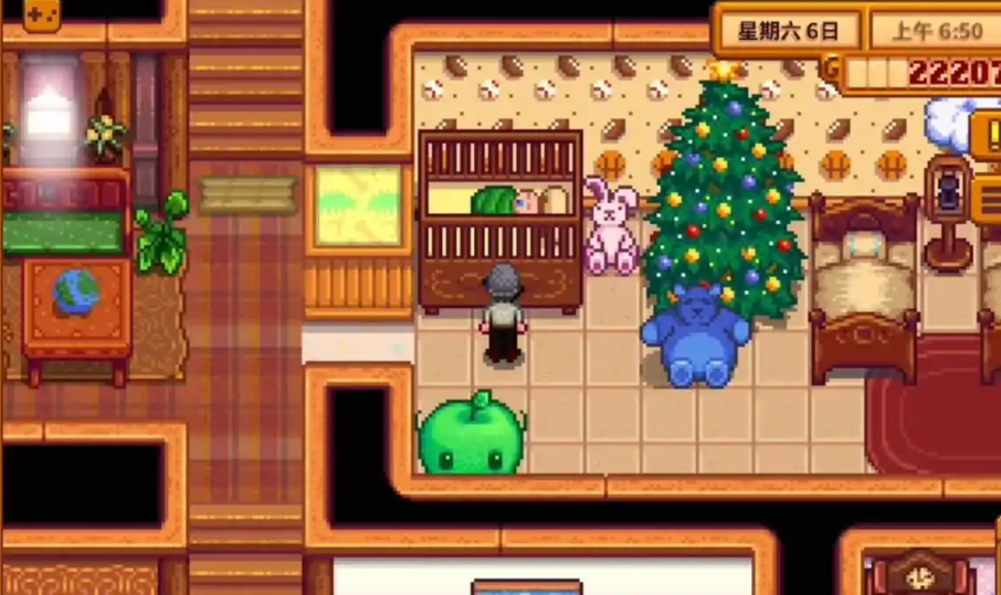 婚后需将房屋升级至拥有婴儿房的规格。初始房屋需通过木匠罗宾进行两次升级,第一次升级获得厨房和双人床,第二次升级解锁婴儿房。升级材料包括硬木、金钱等资源,需提前准备。婴儿房是生孩子的必要条件,若未建造则无法触发后续事件。需保持与潘妮的好感度不低于10颗心,可通过继续赠送礼物或每日对话维持。