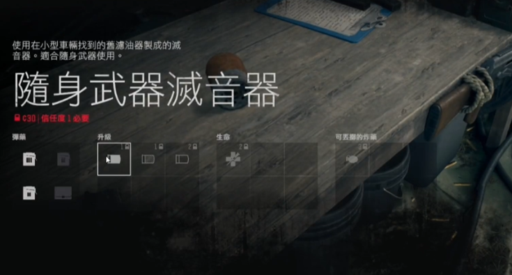 各幸存者营地的军火商人是稳定获取消音器的渠道。消耗营地货币信任点数和军火点数即可购买,但不同营地会根据玩家声望等级解锁不同商品。铁汉营地和巫师岛营地的中后期商人会提供更高级别的消音器配件。购买时需注意区分手枪与长枪消音器,错误购买会导致无法装备。