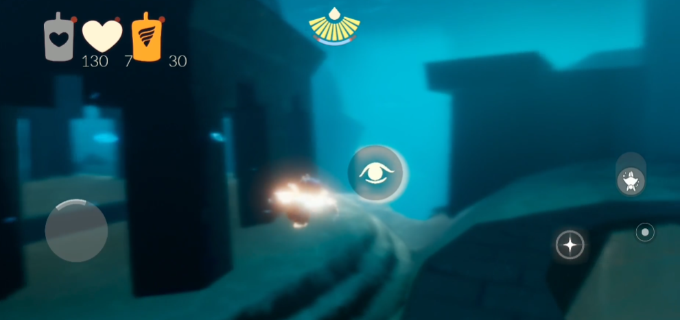 潜到水下之后,环境会变得比较暗,你得适应一下。水里是有氧气限制的,要注意你头顶上的呼吸条,快没了就得赶紧找地方换气或者靠近能恢复氧气的水草。任务的目标通常是一个被铁门关着的小房间。你需要先游到这个房间附近,仔细找找,在房间的左边墙上会有一个缺口,从这个缺口就能钻到房间里面去。进了房间,你会看到里面有机关,靠近机关,屏幕上会出现一个手掌形状的标志,点击它,就能操作机关把大门打开。这个过程就是藏宝岛礁很多任务的核心环节,打开大门,释放出被关着的光之生物或者拿到任务物品,这个环节的任务差不多就算完成了。