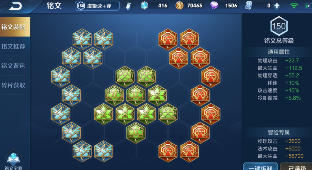 除了装备,铭文的搭配对秒人能力也至关重要。一套好的铭文能让虞姬在开局就占据优势。常见的搭配思路是混合祸源和无双来提升暴击率和暴击效果,比如五个无双加五个祸源,这样暴击打出来更疼。绿色铭文毫无疑问选择鹰眼,提供物理攻击和穿透,前期对线消耗更有力。蓝色铭文可以选择狩猎和夺萃混搭,狩猎加攻速和移速,让走位更灵活;夺萃则提供物理吸血,增强线上的续航能力,不用总回家。这样一套铭文配合出装,能让虞姬的平A非常痛,配合技能连招,脆皮基本上吃不住一套。