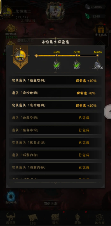 流沙地洞是游戏第十章永恒焦土区域一个都不能少任务里的关键战斗,奥托陷在流沙里,你得根据提示调整队伍角色的力量属性把他拉上来,之后就会坠入真正的流沙地洞,关底要面对三个叫作地穴行者的穴居人BOSS。这仨家伙全是AOE伤害,最恶心人的是会不停给你队伍上眩晕控制,一旦关键治疗被晕住,血线拉不上来很容易就团灭了,所以这一战对阵容的构建和战前准备有挺多讲究。一般人卡在这都是因为控制链太烦人,正面硬刚很容易吃亏,得多从策略上想想办法。