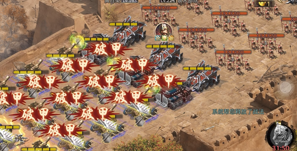 敌方战车通常布置在第四排位置这种战车有溅射效果,如果能在前期破坏掉它们的护甲,就能明显减轻后续的战斗压力。你需要组建一个均衡的队伍来应对他的特性,比如配置高输出武将快速压制他的血量,再加入控场类武将限制他的行动,同时坦克和治疗角色必不可少。比较推荐的组合包括马超、黄月英、甄姬、关羽和周泰这些角色。马超的任务是开局立即使用战法封住敌方将领的行动,黄月英负责在前排垫伤害和破坏战车结构,甄姬则是用来吸收袁术释放的战法伤害,保证队伍稳定。关羽和周泰则要抓住时机,集中火力攻击最后一排的战车单位,这是通关的关键步骤之一。