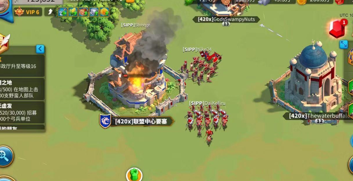 说完了防守的藏兵,我们再来聊聊进攻性的飞堡战术,这招在王国内战或者争夺关键建筑时特别好用。飞堡就是利用你自己联盟、或者附属联盟的要塞,直接建造在敌方关键目标的附近,达到出其不意、贴近攻击的效果。这通常在双方僵持不下,或者敌方抵抗非常顽强的时候使用,核心思路是利用时间差,比如在敌方联盟大部分玩家下线休息的时候,突然把堡垒飞过去,快速建立前线阵地并发起集结进攻。因为前期王国地图很大,如果敌对联盟离你很远,靠慢慢铺旗帜推进可能几天都够不着,这时候飞堡就能瞬间拉近距离,直接击溃对方的防线,打乱他们的部署。这个战术的目标往往是烧掉对方关键的连接旗帜,切割他们的领土,或者直接威胁到他们的联盟要塞、圣坛等核心建筑,从而在战略和心理上给予对手沉重打击。