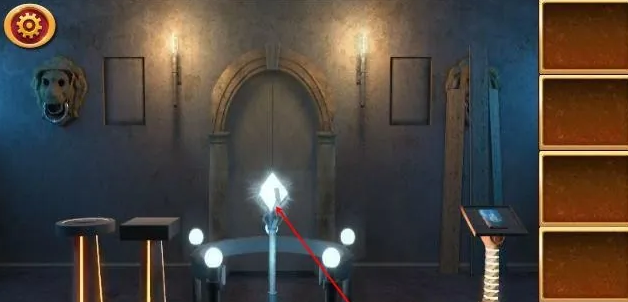 狮头机关的操作需要严格遵循提示纸条的指引,在房间左侧的狮头处,玩家应根据提示将火焰元素放入狮头的双眼位置,并将黏土放入口中,正确组合后会触发隐藏机关,从中获得光系魔法书和一半木环,光系魔法书可用于进一步解谜,而木环是构建最终机关的部分组件。