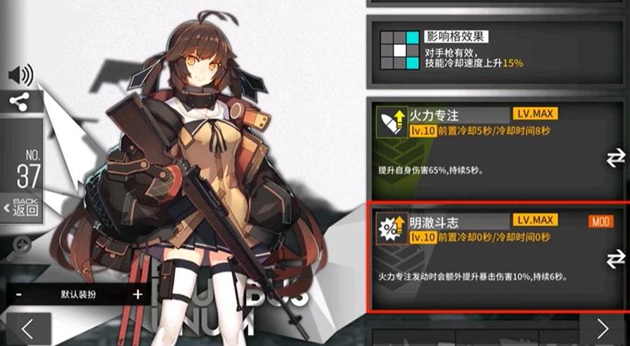 她的核心技能是火力专注,开启后能在短时间内大幅提升自身的伤害。这个技能简单粗暴,就是实打实地增加输出,在面对BOSS或高血量敌人时效果显著。在装备选择上,普遍推荐为她搭配穿甲弹和高倍率光学瞄具,这能进一步放大她的伤害优势,并让她在面对有护甲的敌人时也不至于束手无策。她的站位光环效果通常是为特定位置的手枪人形提供增益,比如减少技能冷却,这在搭配一些功能型手枪时能起到不错的辅助效果。她是一位专注于单体火力输出的平A型步枪,技能机制直接易懂,装备搭配思路也明确,非常适合新手指挥官理解和运用。