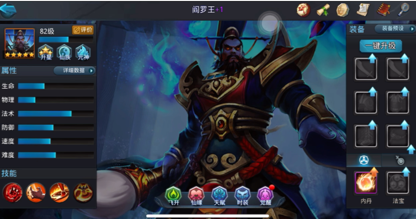 阵容搭配方面,阎罗王因为自身能力全面,所以适配的队友很多,算是个万金油的角色,一个非常经典且好用的组合是阎罗王配上铁扇公主和孙悟空,阎罗王在前面扛着并打控制,铁扇公主在后面提供群体治疗和辅助控制,孙悟空则负责高爆发收割,这个组合推图非常顺畅,如果没有孙悟空,换成白骨精这样的法术伤害英雄也可以,如果打排行榜这类玩家对战,控制会更加重要,可以把孙悟空换成哪吒或者白象精这些带强力控制技能的英雄,和阎罗王自己的控制形成连续的控制链。