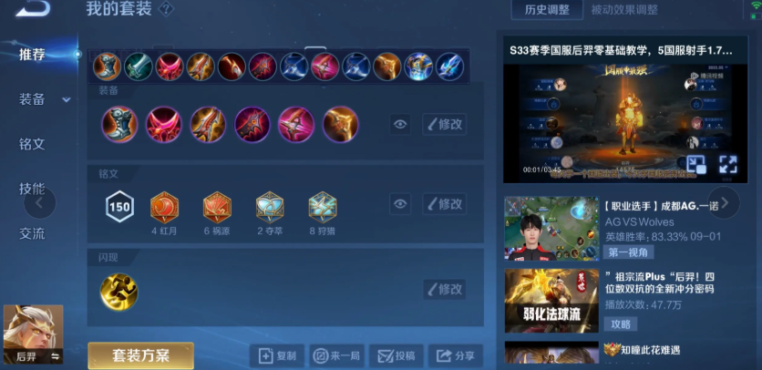 既然我们的目标是穿透,那么铭文上自然也要优先选择能增加物理穿透的。最常见也最通用的选择是百穿铭文,也就是红色带十个异变,绿色带十个鹰眼。这一套下来能直接给你提供100点的物理穿透,让你在游戏刚开始、还没做出穿透装备的时候,就拥有不错的破甲能力,前期对线换血或者清野速度都会有优势。蓝色铭文的选择则稍微灵活一些,如果你想打得凶一点,追求支援和追击能力,可以带十个隐匿增加攻击力和移速;如果你觉得需要一点续航,也可以混搭几个夺萃来提供物理吸血。铭文就是为你的出装思路服务,强化前期的作战能力,让你更快过渡到强势的双穿装备成型期。