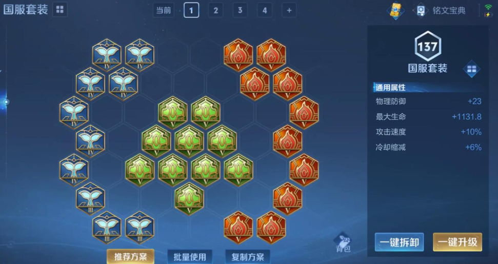 铭文选择上狩猎、鹰眼和祸源的搭配能优化铠的攻速、物理穿透和暴击属性为出装提供补充。狩猎铭文增加攻击速度和移动速度,帮助铠更快接近敌人和进行普攻衔接;鹰眼铭文提升物理穿透,增强对护甲较高目标的伤害;祸源铭文提高暴击率,配合无尽战刃等装备能打出更高暴击伤害。这种铭文设置强化了铠的输出潜力,并弥补了出装中可能缺少的暴击属性,使技能和普攻的衔接更流畅。