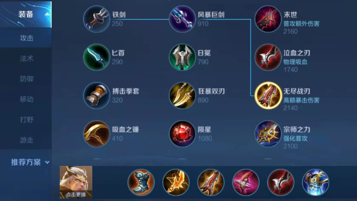 分为侧重团队功能的法球流与在后期补充一定伤害的暴击流。法球流通常选择抵抗之靴、闪电匕首、末世、寒霜袭侵(或逐风)等装备,在提供一定攻速和伤害的同时,装备被动带来的连锁闪电或百分比伤害能增强消耗能力,后期可补足不祥征兆和破晓来平衡生存与打前排能力。而暴击流则更倾向于在团队优势时选择,出装顺序为急速战靴、影刃、无尽战刃、末世、破晓和逐日之弓,其中末世作为关键装备能同时提供续航、攻速和对前排的杀伤力。需纯粹的吸血装备如泣血之刃在当前环境下并非优选。