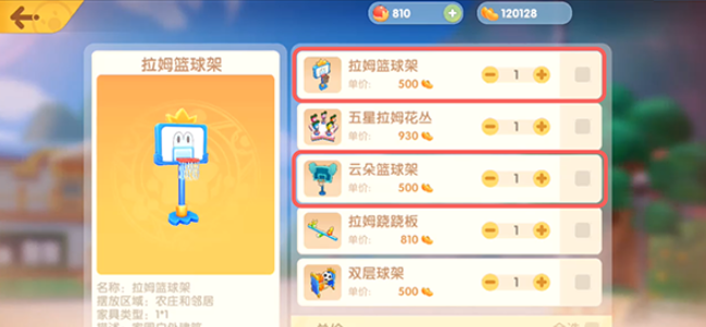 搞清楚了在哪里买以及怎么买之后,我们再来详细看看这两种篮球架的具体情况。游戏里提供的篮球架主要有拉姆篮球架和云朵篮球架两种款式,它们的功能完全一样,区别主要在于外观造型,你可以根据自己的审美喜好来选择是买那个带有可爱拉姆形象的,还是那个造型像云朵一样软萌的。购买的过程非常简单直观,就像平时在游戏里买其他家具一样,点进商店,找到商品,点击购买支付500摩尔豆,篮球架就会直接进入你的背包。之后你就可以回到自己的家园,进入装修模式,从背包里把它拿出来摆放在你喜欢的任意空地上。摆放的时候基本没什么特别的限制,篮球架放好以后,你靠近它就可以进行投篮的互动操作了,算是给庄园生活增添了一个小小的休闲运动项目,虽然不能真的比赛,但自己投着玩或者和朋友一起比比谁投得准,还是挺有意思的。