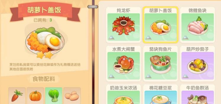 获得了胡萝卜之后,你可别只想着直接卖掉换那一点摩尔豆,那就太可惜啦,它真正的价值在于加工和使用。胡萝卜是制作很多料理的重要食材,比如一份经典的胡萝卜盖饭,就需要消耗2个胡萝卜、3个茄子、1个南瓜和1个白菜。把胡萝卜做成菜肴再出售,获得的利润会比直接卖原材料高不少,制作好的胡萝卜盖饭等食物,还可以作为礼物赠送给特定的NPC,比如艾米记者,这能有效提升你和她之间的好感度,好感度提升到一定阶段还能解锁不错的奖励。胡萝卜虽然看起来普通,但却是连接种植、烹饪和社交好感度系统的一个实用纽带。