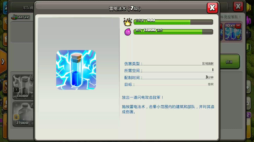 决定升级雷电法术时,你也需要有一些策略性的考量。这并不意味着你需要第一个就升级它,合理的升级顺序很重要。像狂暴法术、冰冻法术这类适用性更广、几乎所有流派都会用到的法术会被优先升满。雷电法术的升级可以结合你主力发展的流派来规划。如果你偏爱使用空中流派,那么它的优先级自然会提前。另一个重要观念是,不要因为升级成本不高就忽略它,有条件时对其进行提升,能为你的战术库增加一个可靠的选择。它能帮你高效清理部落城堡中的低血量援军,或在特定打资源配置中发挥作用。