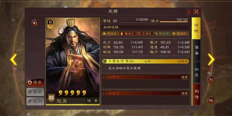 田丰的核心兵法搭配围绕其自带战法竭忠尽智展开,这是一个需要准备一回合的主动战法,能对敌军群体施加减速和混乱控制,并为友军提供抵御。为弥补其速度短板并强化控制效果,兵书选择上优先考虑虚实系中的后发先至,这能使其准备战法获得先攻状态,确保关键控制能及时生效。鬼谋和将威能进一步提升其主动战法的伤害与奇谋几率,而军形或九变系中的防御向兵书如三里而还、无功而励也是增强其生存能力的可靠选择。
