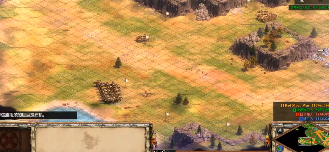 游戏早期,特别是黑暗与封建时代的策略重点是为中期强势期奠定基础。黑暗时代必须充分发挥蒙古狩猎效率提升50%的特性,集中清理鹿群和野猪以快速积累食物资源,核心目标是尽可能迅速地升级到封建时代,通常不生产任何作战单位以节省资源。进入封建时代后,骚扰战术正式启动,此时经济的木材与黄金采集需保持稳定。兵种搭配以轻骑兵和步弓手为核心,轻骑兵凭借低成本和高移速绕后袭击敌方农民与经济建筑,执行打完就跑的战术,步弓手则提供远程火力支援并克制敌方可能生产的长枪兵。此阶段兵力应分散为多股进行不同方向的袭扰,迫使对手顾此失彼,从而为己方安全过渡到城堡时代争取时间与资源。