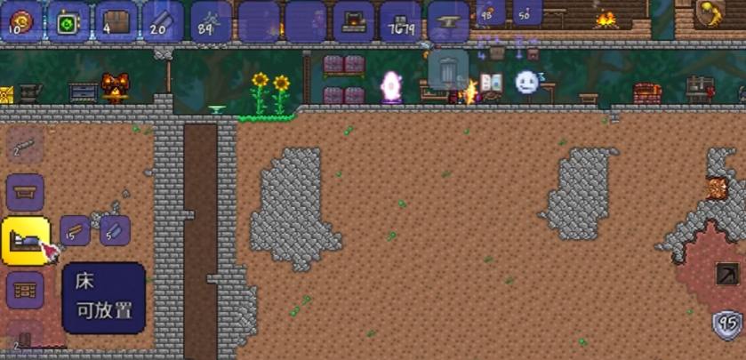 游戏开始时你只有基础工具,第一件事就是砍树获取木材,并赶在第一个夜晚降临前建造一个能够抵御怪物的简易房屋。一个合格的房屋需要完全封闭的空间、背景墙、光源、桌椅和门,这是你后续生存和发展的根基。白天还应探索附近相对安全的森林地表,寻找散落的罐子和宝箱,里面可能会有挂钩、回忆药水或初期武器等实用道具。