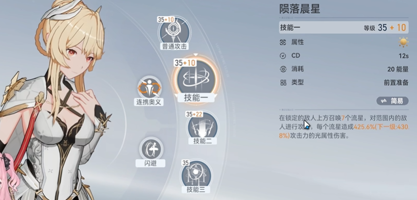 赫拉的技能设计充分体现了她的战力价值,普通攻击闪白流光对锁定目标造成光属性伤害,而技能陨落晨星在目标上方召唤流星进行范围攻击,造成高额光属性伤害。曙光祈愿不仅对周围敌人造成伤害,还为攻击力最高的队友提供攻击力加成,持续15秒,这一增益效果能显著强化主C角色的输出。黄道天枢作为脱手技能,在目标上方召唤天枢进行持续攻击,奥义永昼回响则提升全队伤害并返还技能消耗的机制值,这些技能协同作用,让赫拉在辅助的同时贡献可观的伤害。