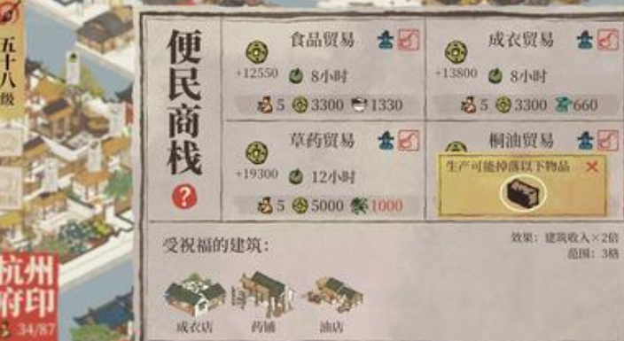 商栈的摆放位置有严格限制,必须沿杭州北面的大运河放置,且有三格需建在河面上以方便船只卸货。商栈之间不能重叠,它们的加成范围需独立。玩家在指派角色时,应确保建筑升级到四级并保持在生效范围内,否则商栈可能降级。通过合理规划布局和角色指派,玩家可以高效经营商栈,支撑整个城市的经济发展。