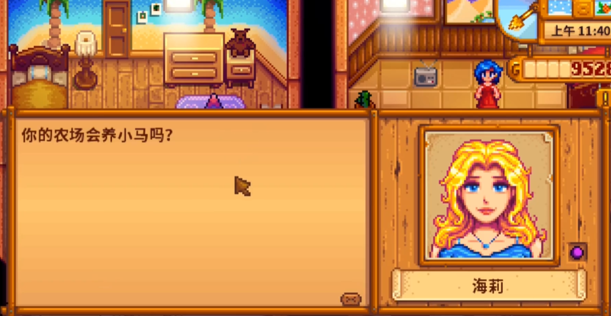 好感度达标后,关键来了:得在除冬季外的晴天,上午10点到下午4点之间去煤矿森林。这时候你会看到海莉正在玛妮的牧场拍照,她会请你帮忙拍奶牛的照片。剧情会自然展开,她会尝试爬上一头奶牛,结果摔得满身是土,但特别开心。结束后第二天,你会收到她的一封信,信里她会说开始理解你为什么喜欢田园生活了。