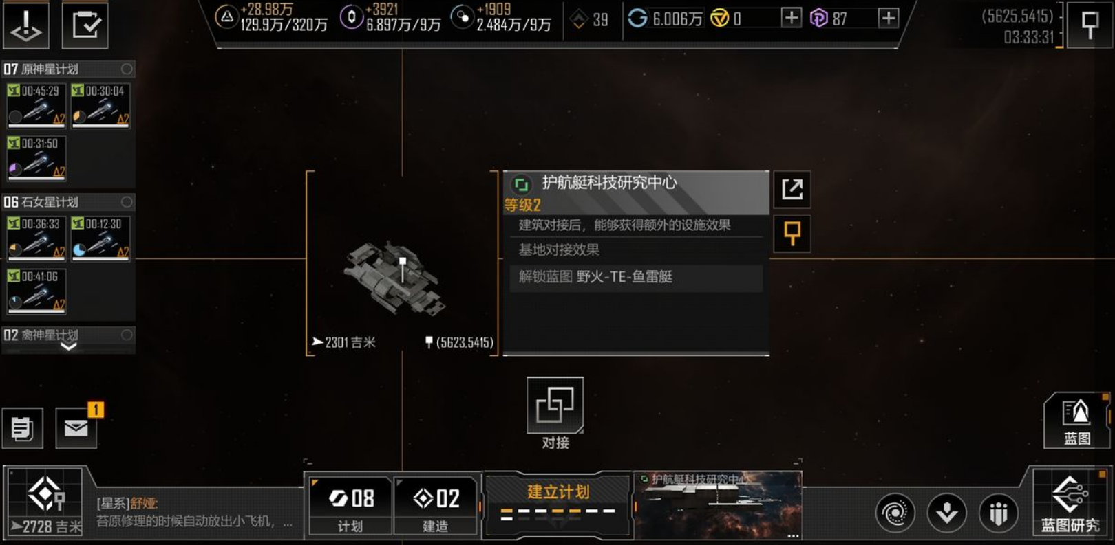 建造过程中要注意工程船的移动速度,小型工程船速度较慢,可以先用高速侦察舰提前到达目标位置建立计划圈,这样工程船能通过曲率加速快速抵达。哨站建好后能节省计划圈名额,还能直接对接资源点自动采集,虽然产量比工程船手动采集少,但胜在不用额外操作。哨站对接的资源点其他玩家无法采集,这能有效保护咱们的资源收益。