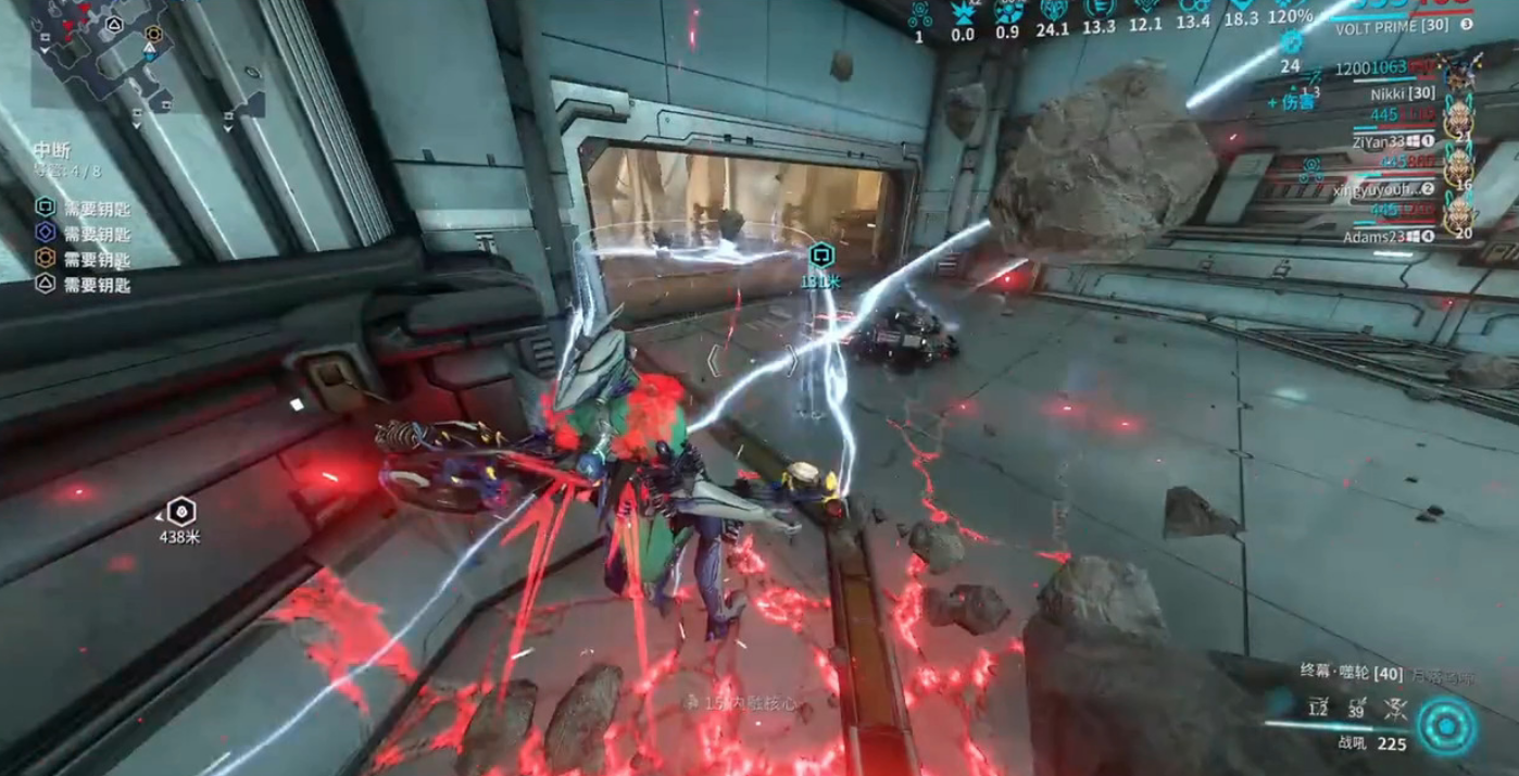 进入任务后,赤毒虹吸器会以大型机械装置的形态出现在地图特定位置。接近该装置时会触发赤毒收集过程,同时地图中将持续生成赤毒Grineer单位干扰玩家。虹吸器启动后会发出独特音效,并伸出四条穗带中的一条指向赤毒云飘来的方向。这个视觉提示是定位赤毒云的关键,玩家需根据穗带指向在场景中寻找红黑色雾状物质。