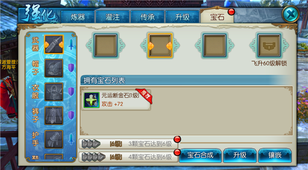 飞升后的装备会解锁第4个宝石孔,但需要达到飞升60级才能开启。前三个孔建议用攻击、暴击、命中和防御、气血、躲闪的组合,第四个孔根据实际情况补足短板。比如感觉暴击不够就补暴击宝石,生存压力大就加抗性或爆伤减免。宝石属性不是固定的,可以根据副本或PK需求灵活调整,比如打高难度BOSS时换上抗性宝石。