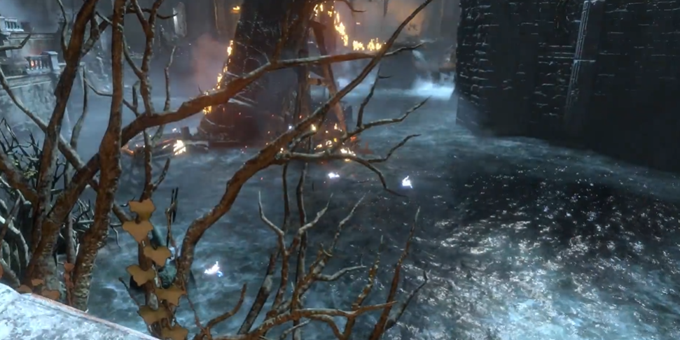接下来要调整水流方向让油桶顺利漂到雕像脚下。如果发现油桶总撞墙爆炸,记得用弓箭射击木桩改变流向。当油桶靠近雕像时,快速用火箭点燃,爆炸会破坏雕像的支撑结构。注意观察场景,有时候需要先炸开障碍物才能让油桶通过,比如用希腊火炸碎挡路的木板。