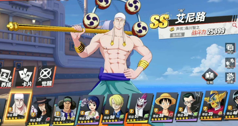 最后,资源有限的话,优先集中培养1-2个主力角色,别分散投资。竞技场和PVE需要的角色略有不同,但像鹰眼、艾尼路、黑足山治这种全能型选手,无论哪种玩法都能发挥巨大作用。抽卡时也别太纠结,有的角色虽然强度高,但获取难度大,平民玩家可以优先培养容易升星的A级或S级角色,比如烟鬼和路飞,前期过渡非常舒服。