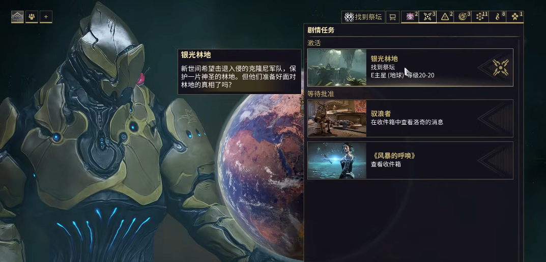 首先咱们得准备好暮光药剂,这是进入银光林地的关键道具。药剂设计图在上次任务中从祭坛获得,制作完成后记得在军械库的消耗品栏装备上。打开星图找到地球,选择银光林地节点进入。进入地图后会被敌人袭击,需要击败出现的魅影才能继续任务。成功击败后前往撤离点,这时会获得幻蝶仙灵战甲的部件设计图和日出药剂设计图,为后续任务做准备。