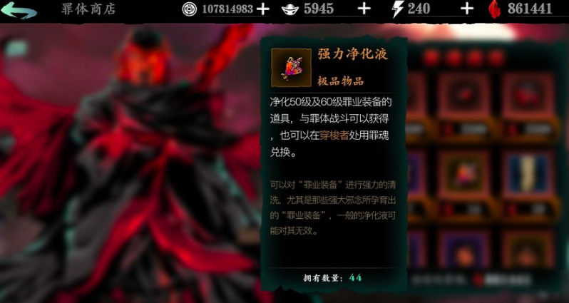净化液是解锁罪业装备的基础道具,使用后装备会显现真实属性和词条。罪业装备的词条随机范围比普通橙装、绿装更广,理论上可能出现的攻击属性都可能出现,因此上下限差距较大。需净化仅能让角色装备该物品,但装备的负面效果依然存在,例如降低防御或减少生命恢复等,必须依赖洗罪符进一步处理。