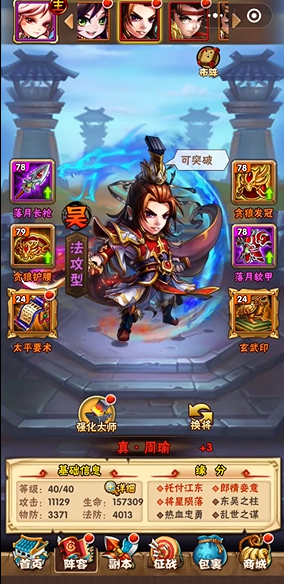 护佑战宠的培养需要注重神炼和吞噬等操作,神炼满级后可获得显著的全属性提升,而吞噬则能直接增强宠物技能伤害和基础数值,玩家需合理分配资源如红宠碎片,优先提升护佑主将的宠物等级,以解锁更强的增益效果。护佑的装备特技和基础属性也不容忽视,优先选择提升主动战法发动率的选项,以增加灼烧触发的频率。周瑜常与陆逊、程普等武将组成社稷弓阵容,利用火系联动造成额外伤害,而护佑的搭配需考虑阵容的御值控制和兵种适应性,避免资源浪费。如果缺乏特定护佑宠物,可用高练度替代品,但要确保阵容中有足够的前排保护,避免周瑜被快速突破。
