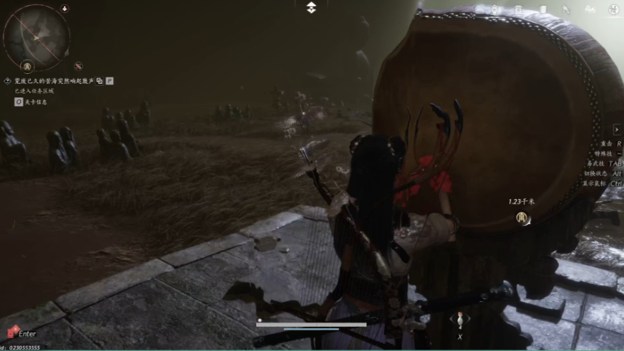抵达后任务会自动触发。你的首要目标是追寻环境中神秘的鼓声,这声音会指引你找到三个需要敲响的木鼓。每个鼓附近都有被称为赎罪的天虎军或士兵把守,你必须先击败这些敌人,然后才能上前敲鼓,记得顺手解锁鼓旁边的界碑以便快速移动。