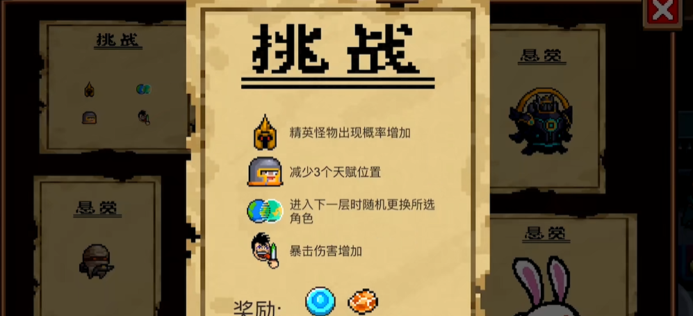 选择挑战因子的时候你得动点脑筋,别光挑那些看起来酷的,比如敌人速度加快或子弹更多这种,新手最好从基础因子入手像减少金币掉落或敌人数量微增,这样压力小点能慢慢学怎么躲弹幕和用技能,同时选角色也很关键,骑士或游侠这类生存强的角色更适合起步,武器方面带个远程加近战组合别太依赖单一输出,打起来时多利用掩体和房间布局别硬刚,免得因子效果叠加后翻车。